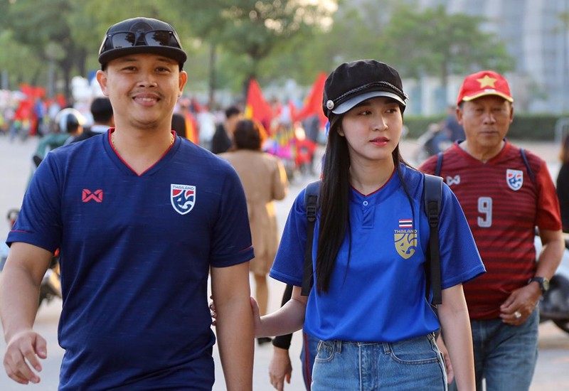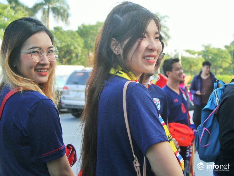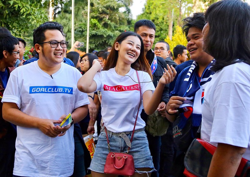 20h tối 19/11, trận đấu giữa đội tuyển Việt Nam – Thái Lan sẽ diễn ra trên SVĐ Mỹ Đình (Hà Nội). Nhưng khoảng 3 tiếng trước trận đấu diễn ra, những cổ động viên (CĐV) Thái Lan, trong đó có cả một dàn mỹ nhân tới cổ vũ cho đội tuyển của họ.