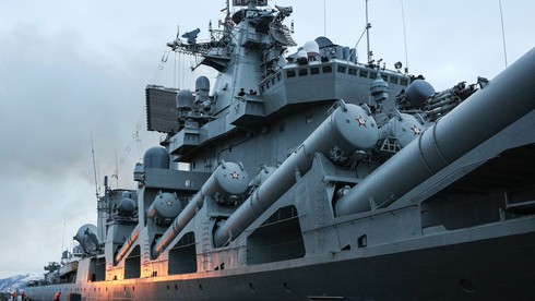 Tàu tuần dương tên lửa dẫn đường lớp Slava Đô đốc Ustinov của hải quân Nga. (Ảnh: Sputnik) |