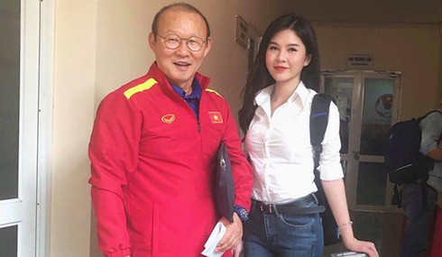 Trước đó, hình ảnh MC Vũ Thu Hoài – cũng từng được báo Hàn truy lùng danh tính sau bức ảnh chụp cùng HLV Park Hang-seo. |