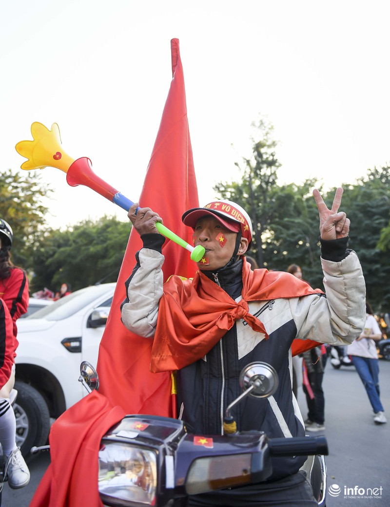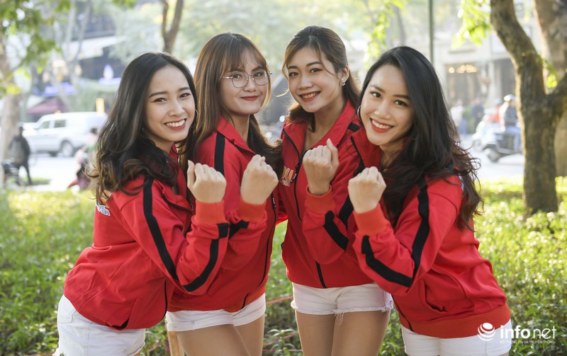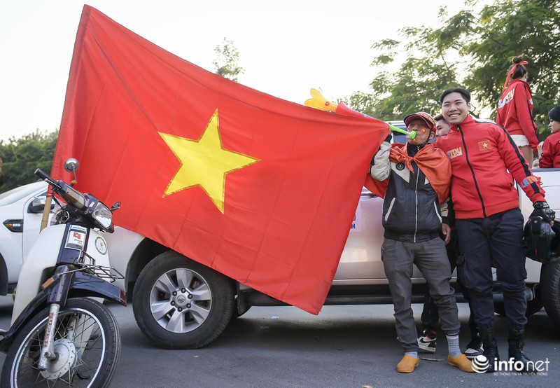 Tất cả cổ động viên với băng rôn đeo trên đầu (dĩ nhiên có mang mũ bảo hiểm) cùng cờ Tổ quốc, kèn, trống… thể hiện niềm tin quyết thắng, hô vang “Việt Nam vô địch” “Tự hào quá Việt Nam ơi”… tạo nên không khí vô cùng sôi động.