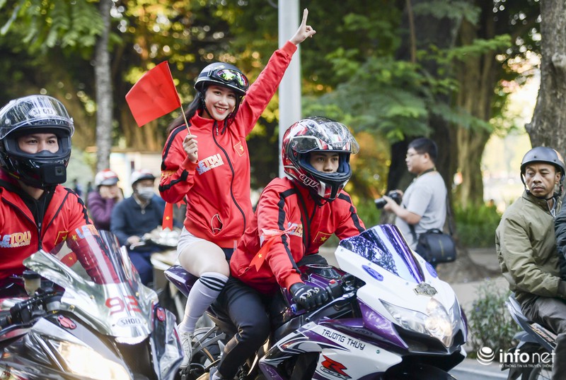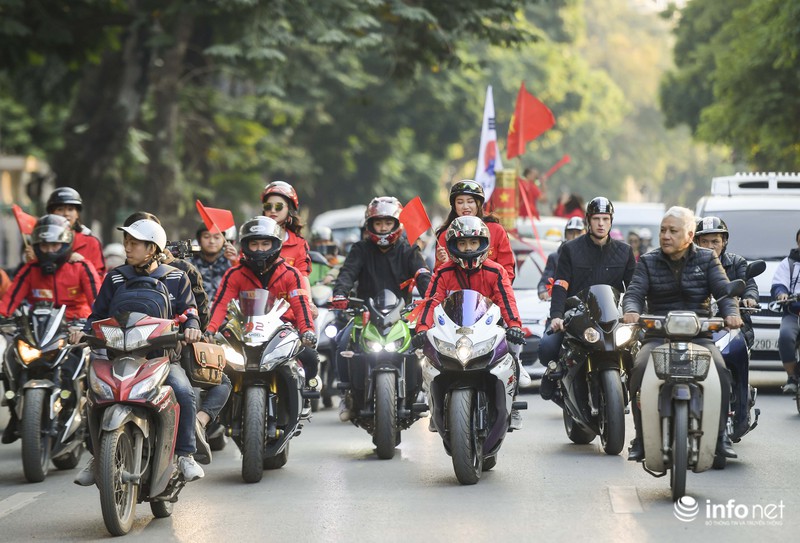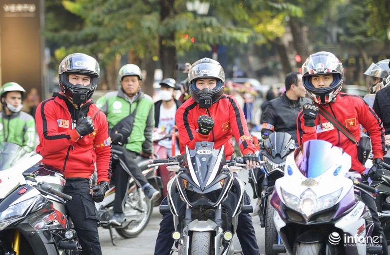 Nhiều xe phân khối lớn của các hội nhóm CĐV cũng xuống đường, hòa chung với ngày hội bóng đá của cả nước.