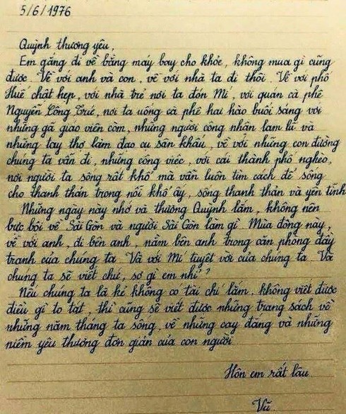 Hoặc trong bức thư đề ngày 8/6/1978, nhà thơ Xuân Quỳnh gửi nhà biên kịch Lưu Quang Vũ viết: