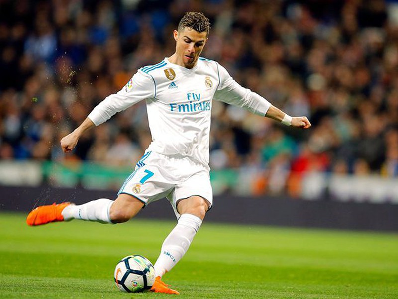 Cristianno Ronaldo với đôi giày màu cam nổi bật của hãng Nike. |
