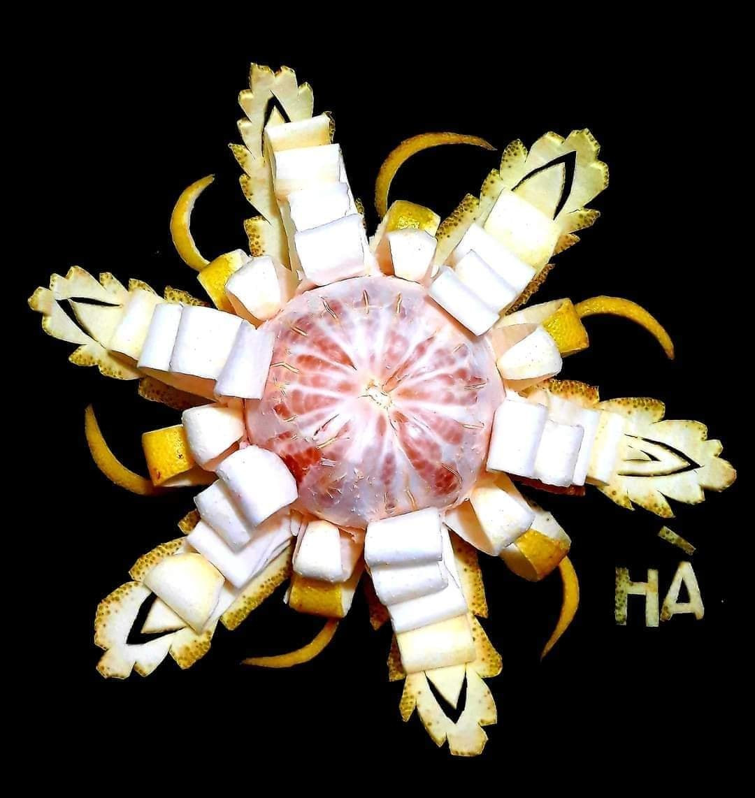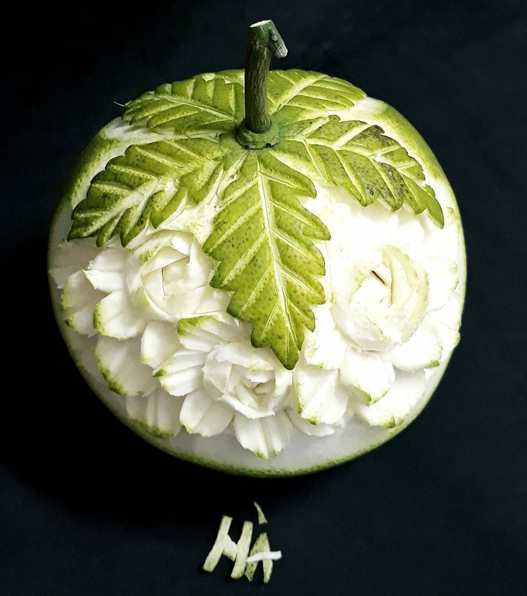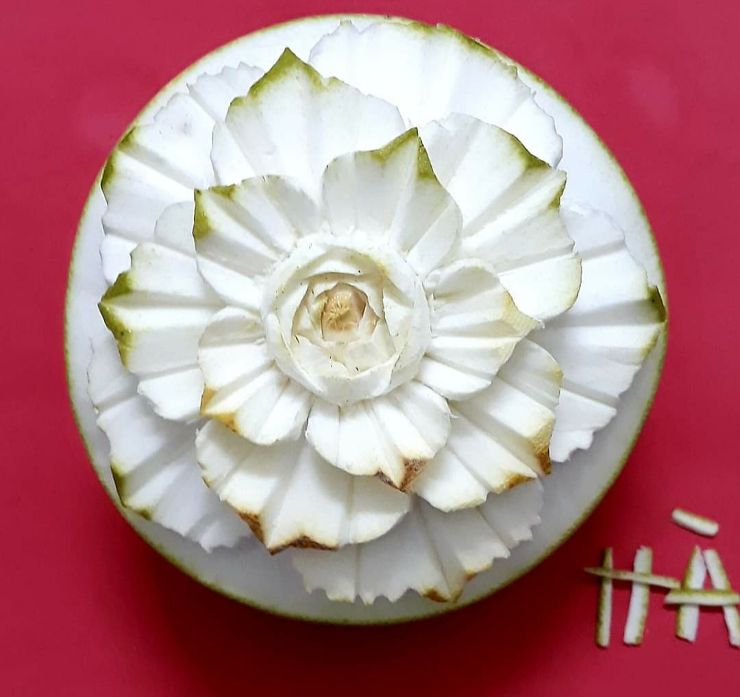 Cùng ngắm những bông hoa đẹp mắt tỉa từ quả bưởi của chị Hà: