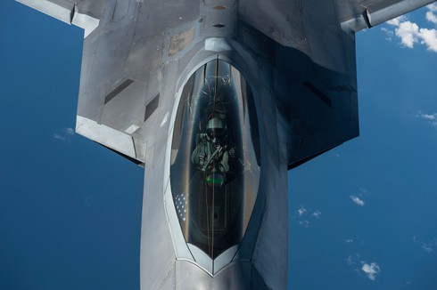 Một phi công Mỹ điều khiển phi cơ chiến đấu F-22. |