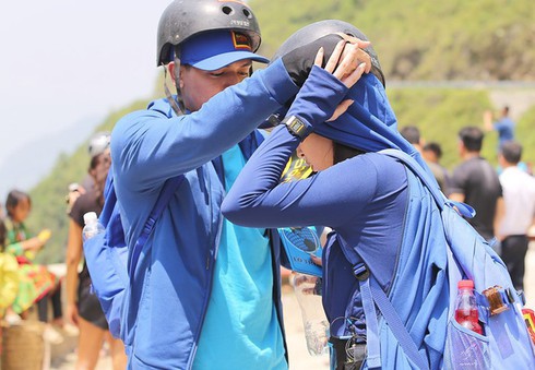 Chàng trai của đội xanh không chỉ giữ trọng trách "gánh team" mà còn là người đàn ông galant, chăm sóc từng chút một bạn nữ cùng đội mình. |