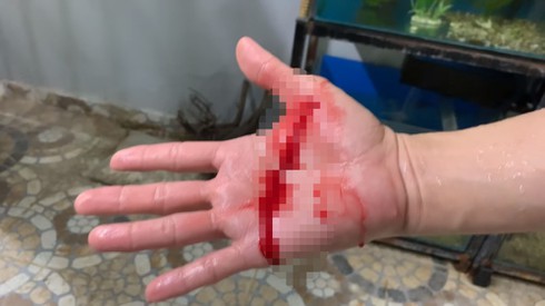 Đan Trường bị cá hổ cắn chảy máu tay.