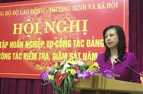 Phát biểu chỉ đạo tạị Hội nghị, đồng chí Đào Hồng Lan Bí thư Đảng uỷ Bộ, Thứ trưởng Bộ LĐ - TBXH nhấn mạnh: “Nội dung Hội nghị tập huấn bao gồm những nội dung rất thiết thực, đi thẳng vào những vấn đề rất cụ thể để giúp cấp uỷ các cấp từ cấp chi bộ đến các Đảng uỷ cơ sở nắm vững hơn công tác đảng vụ từ công tác đào tạo nguồn phát triển Đảng đến việc hướng dẫn tiến hành các thủ tục… Điều này rất quan trọng và cần thiết, đặc biệt là đối với các đồng chí Bí thư chi bộ mới. Trong quá trình thực hiện, các đồng chí nên thẳng thắn, trao đổi các công tác về Đảng, và phải luôn đảm bảo tính nguyên tắc của Đảng. Đặc biệt là công tác triển khai các Nghị quyết, thường xuyên tổng kết, rút kinh nghiệm để bổ sung, hoàn thiện các cơ chế, quy định của Đảng trong công tác kiểm tra, giám sát… Luôn coi trọng, đổi mới, nâng cao chất lượng công tác kiểm tra, giám sát của Đảng… Sau Hội nghị tập huấn lần này, các đồng chí Bí thư Chi bộ vận dụng những kiến thức, những nội dung đã tiếp thu tại đợt tập huấn này về có kế hoạch triển khai có hiệu quả tại đảng bộ, chi bộ từ đó nâng cao chất lượng tổ chức đảng và đảng viên ”.