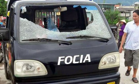 Chiếc xe bị ném đá vỡ kính. |