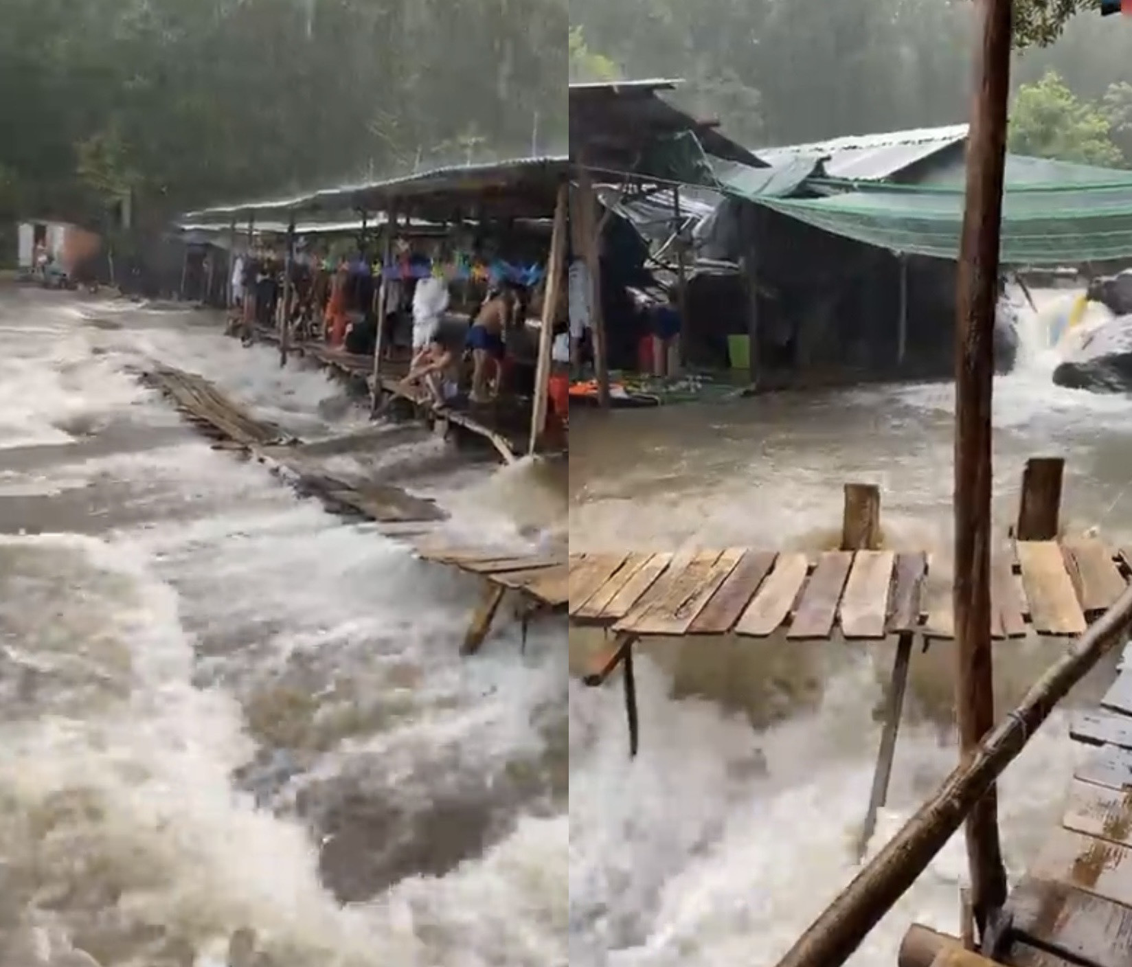Đang tắm suối, du khách vội vàng tháo chạy vì lũ quét đổ về