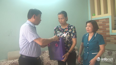 Giám đốc Sở Y tế Hà Nội Nguyễn Khắc Hiền đến thăm động viên chị Lê Thị Toan |