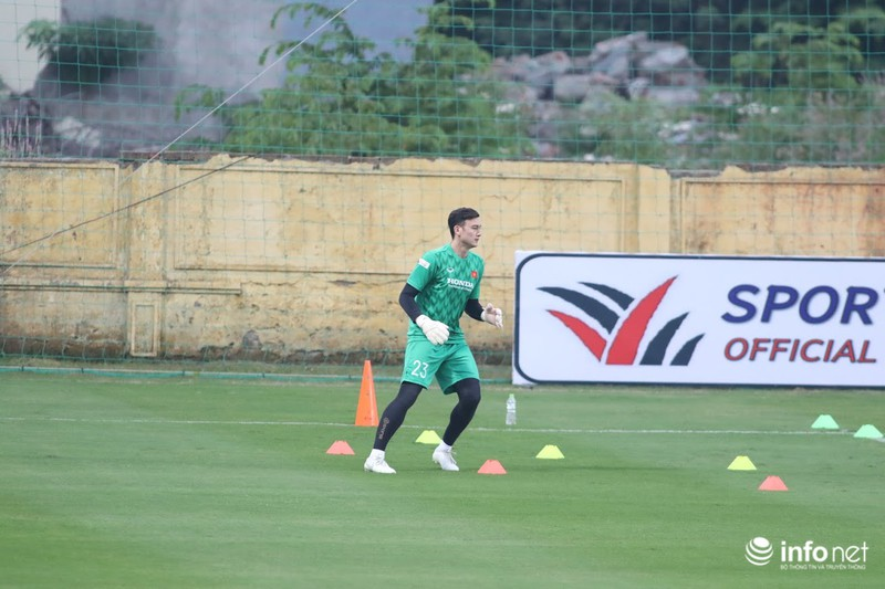 Thủ môn Văn Lâm đã có mặt để tham gia tập luyện cùng thủ môn Tuấn Mạnh và HLV thủ môn Trần Minh Quang. |