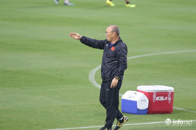 Tại buổi tập này, HLV Park Hang-seo tập trung chỉ đạo các cầu thủ của ĐT Việt Nam, còn đội U22 Việt Nam được giao cho các trợ lý Kim Han Yoon và Lee Young Jin. |