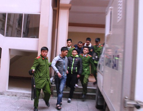 Các bị cáo được áp giải ra ngoài sau khi nhận bản án. |