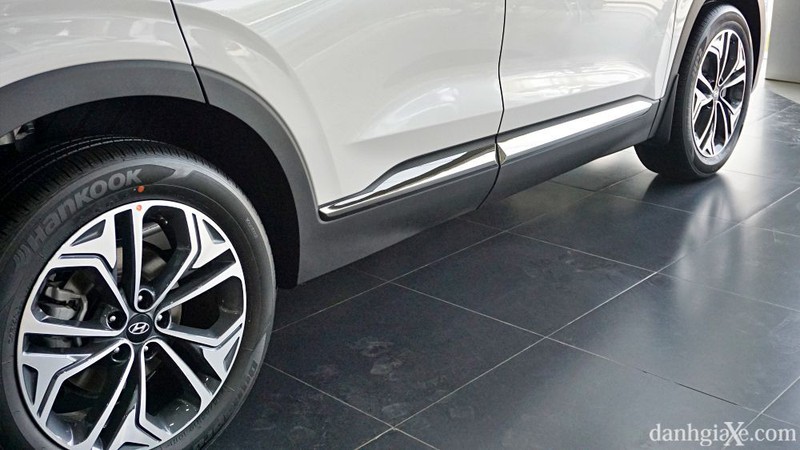 Đường gân bên thân xe được bố trí nổi bật và nằm cao hơn, kết nối liền lạc từ đèn pha xuống đèn hậu. Gương chiếu hậu cùng màu tích hợp đèn báo rẽ cũng góp phần tạo điểm nhấn cho hông xe. Ngoài ra, SantaFe 2020 trang bị mâm đúc hợp kim 19 inch đa chấu thể thao, tạo cảm giác chuyển động ngay cả khi xe chưa lăn bánh trên đường.