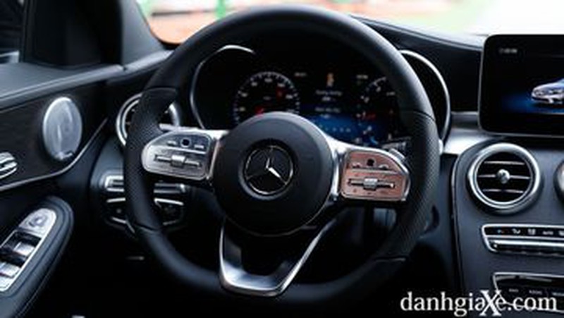 Tương tự hai người anh em, C300 AMG cũng được trang bị vô-lăng ba chấu bọc da Nappa cao cấp, chỉnh điện 4 hướng và trợ lực điện. Các nút bấm tích hợp các chức năng đàm thoại, âm lượng… được bố trí đối xứng hai bên, cần số và hai lẫy chuyển số thể thao ở phía sau. Phía trước, bảng đồng hồ được thay bằng một màn hình kỹ thuật số 12,3 inch với viền nhôm đẹp mắt hiển thị các thông số như vòng tua, vận tốc, mức xăng, nhiệt độ… một cách đầy hấp dẫn.