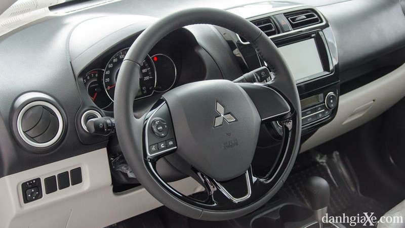 Vô lăng có lẽ là một trong những đặc điểm nhận dạng quen thuộc trên những dòng xe của Mitsubishi. Và Attrage vẫn tiếp tục thừa hưởng truyền thống ấy với vô lăng 3 chấu bọc da (bản CVT và MT) thiết kế khỏe mạnh, cảm giác cầm nắm vững vàng và chắc chắn.