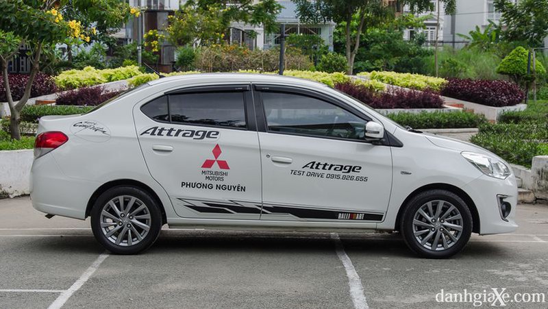 Phần thân xe của Attrage 2019 có thiết kế khá đơn giản với hai đường gân chạy từ trước ra sau đi cùng với điểm nhấn duy nhất là bộ mâm đa chấu khá đẹp mắt có đường kính 15 inch. Kể từ phiên bản Attrage 2018, Mitsubishi đã bổ sung thêm tính năng gập điện cho gương chiếu hậu để giúp người lái thuận tiện hơn trong quá trình sử dụng.