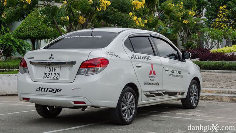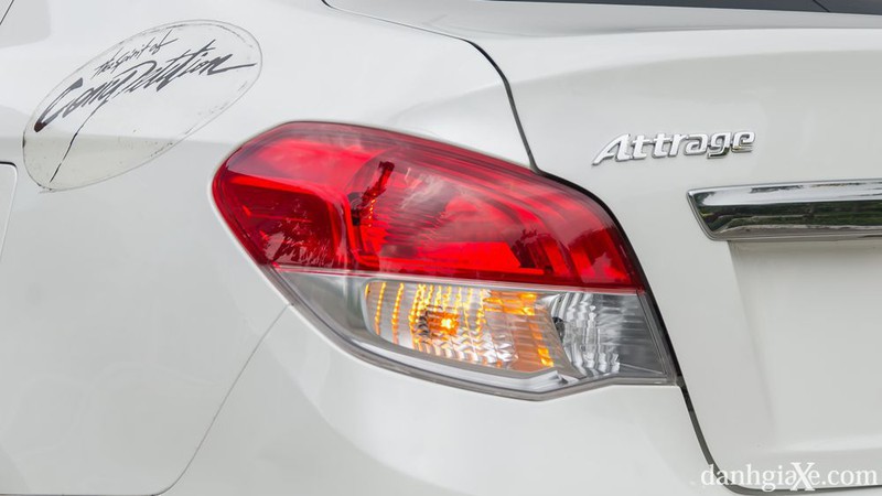 Phía sau Attrage vẫn sở hữu thiết kế khá hài hòa và ăn nhập với tổng thể của xe. Nổi bật là thanh nẹp chrome trải dài ở cốp sau, phía trên là logo Mitsubishi cũng được mạ chrome bóng bẩy. Cụm đèn hậu to bản, có phần hơi “hiền” với cấu trúc phân tầng rõ rệt tạo sự liền lạc cho tổng thể. Cũng từ phiên bản tiền nhiệm 2018, Attrage đã được trang bị nút bấm mở cốp đặt bên ngoài thay cho kiểu tích hợp vào tay nắm cửa, qua đó giúp bạn dễ dàng mở cốp khi đang mang vác nhiều đồ đạc cồng kềnh hơn.