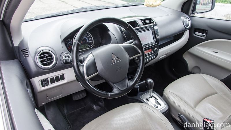 Khoang cabin của Mitsubishi Attrage nhìn chung sở hữu phong cách khá đơn giản và thực dụng, hướng đến hiệu quả sử dụng cho cả người lái và hành khách trên xe. Các chi tiết nội thất và cách bố trí trên Attrage khá khoa học và hợp lý.