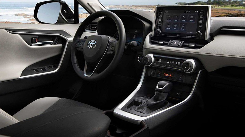 Trái ngược với vẻ ngoài, khoang nội thất của RAV4 2019 được nhiều chuyên gia đánh giá là khá tròn trịa và hài hòa. Xe được trang bị bảng táp lô hiện đại và sang trọng, hệ thống thông tin giải trí với màn hình cảm ứng 7.0 hoặc 8.0 inch đặt cao cùng khả năng tương thích với Apple CarPlay.