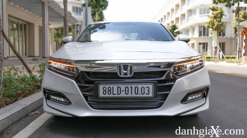 Thiết kế mặt trước của Accord sở hữu mui xe ngắn hơn một chút so với phiên bản trước cùng lưới tản nhiệt mạ crôm và đèn pha hình cánh chim được bố trí hợp lý. Phần lưới tản nhiệt của Accord 2020 mang đến cảm giác liền lạc hơn chứ không còn chia thành 2 tầng như thế hệ trước, các thanh ngang mỏng đã thay thế cho dạng lưới tổ ong.