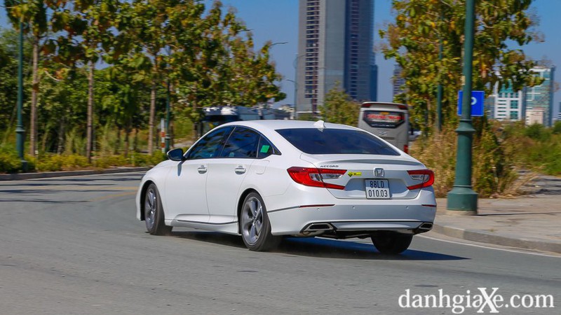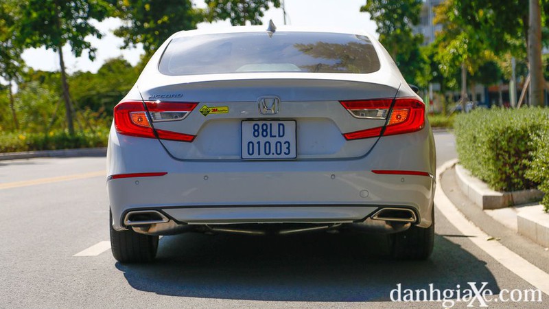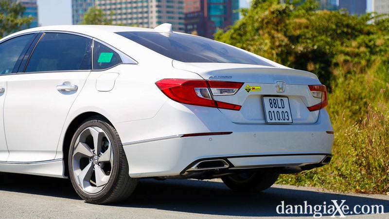 Ở phía sau, giống như phần đầu xe, phần đuôi xe được thiết kế chau chuốt mang đậm tính thể thao,tràn đầy sức sống và dài hơn một chút so với Accord thế hệ trước. Bên cạnh những chi tiết thiết kế đậm chất hiện đại và đẳng cấp, ngoại thất của Accord còn gây ấn tượng mạnh mẽ với chủ nhân bằng nhiều thiết bị hữu ích như: Hệ thống đèn LED, lốp xe Michellin giúp giảm tiếng ồn đi cùng mâm 18 inch mang thiết đầy ấn tượng…
