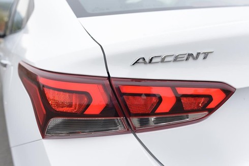 Đuôi xe cũng có thiết kế hiện đại khi thiết kế nắp khoang hành lý vuốt cao, mô phỏng cánh gió ảo phía đuôi xe. Cụm đèn hậu thiết kế tương tự đàn anh Elantra với các dải sáng vuốt nhọn vào trong. Phiên bản 1.4AT và 1.4AT được trang bị đèn hậu LED 3D hiện đại. Trong khi cản sau Hyundai Accent 2018 có thiết kế cứng cáp với các viền ốp bảo vệ sơn đen. Ống xả cũng được dấu phía dưới mang lại tính thẩm mỹ cao cho đuôi xe.
