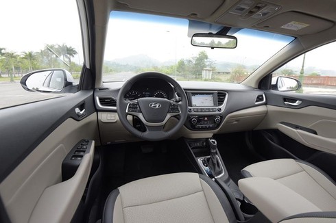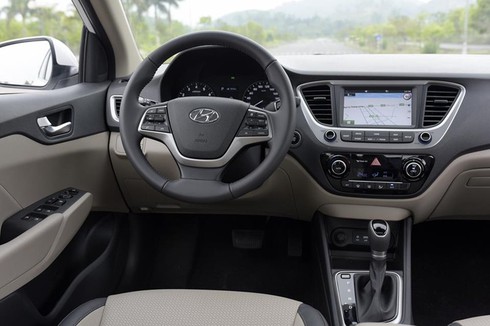 Hyundai Accent 2018 có vô lăng thiết kế 3 chấu thể thao và bọc da, tích hợp đầy đủ điều khiển hệ thống âm thanh, đàm thoại rảnh tay. Phiên bản cao cấp nhất được trang bị tính năng điều khiển hành trình cruise control tiện dụng. Đồng hồ lái sau vô lăng dạng analog siêu sáng, tích hợp màn hình hiển thị đa thông tin LCD 3.5-inch, cung cấp thông tin vận hành, tình trạng xe cũng như cài đặt các chức năng khác.