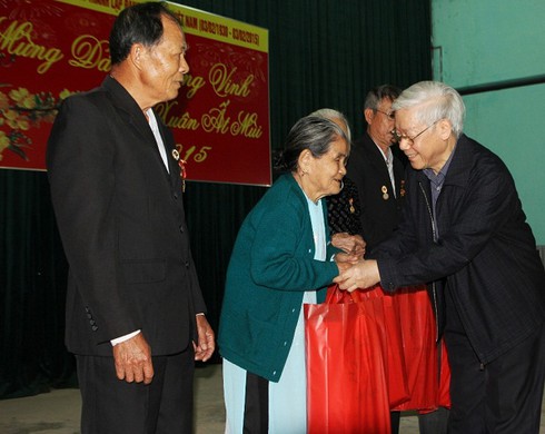 Tổng Bí thư Nguyễn Phú Trọng tặng quà cho người có công Tết Ất Mùi |