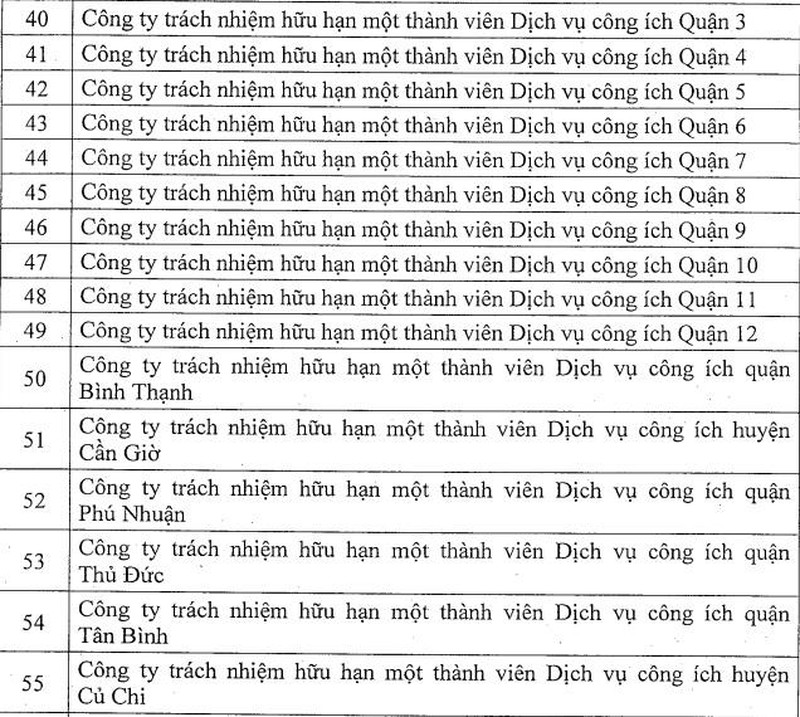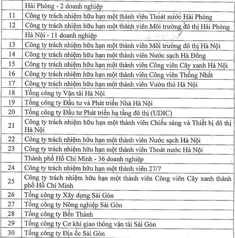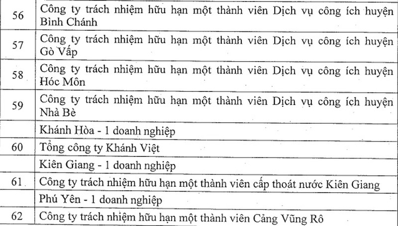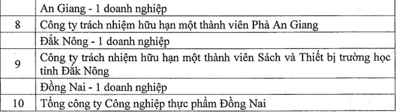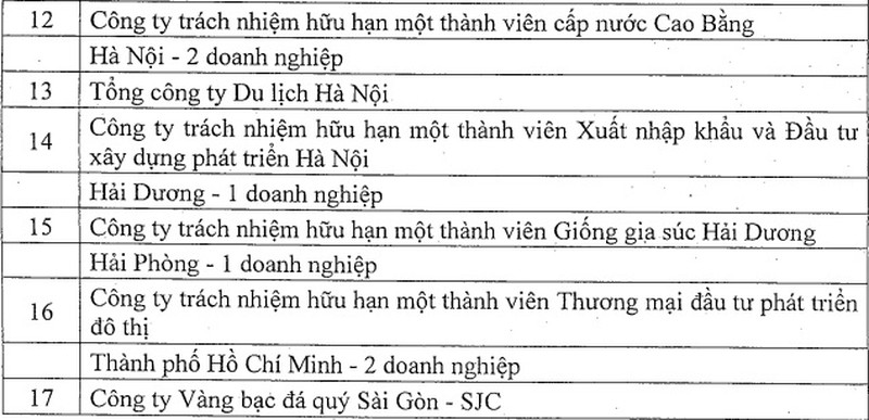 Danh sách các doanh nghiệp đi kèm phụ lục gồm: