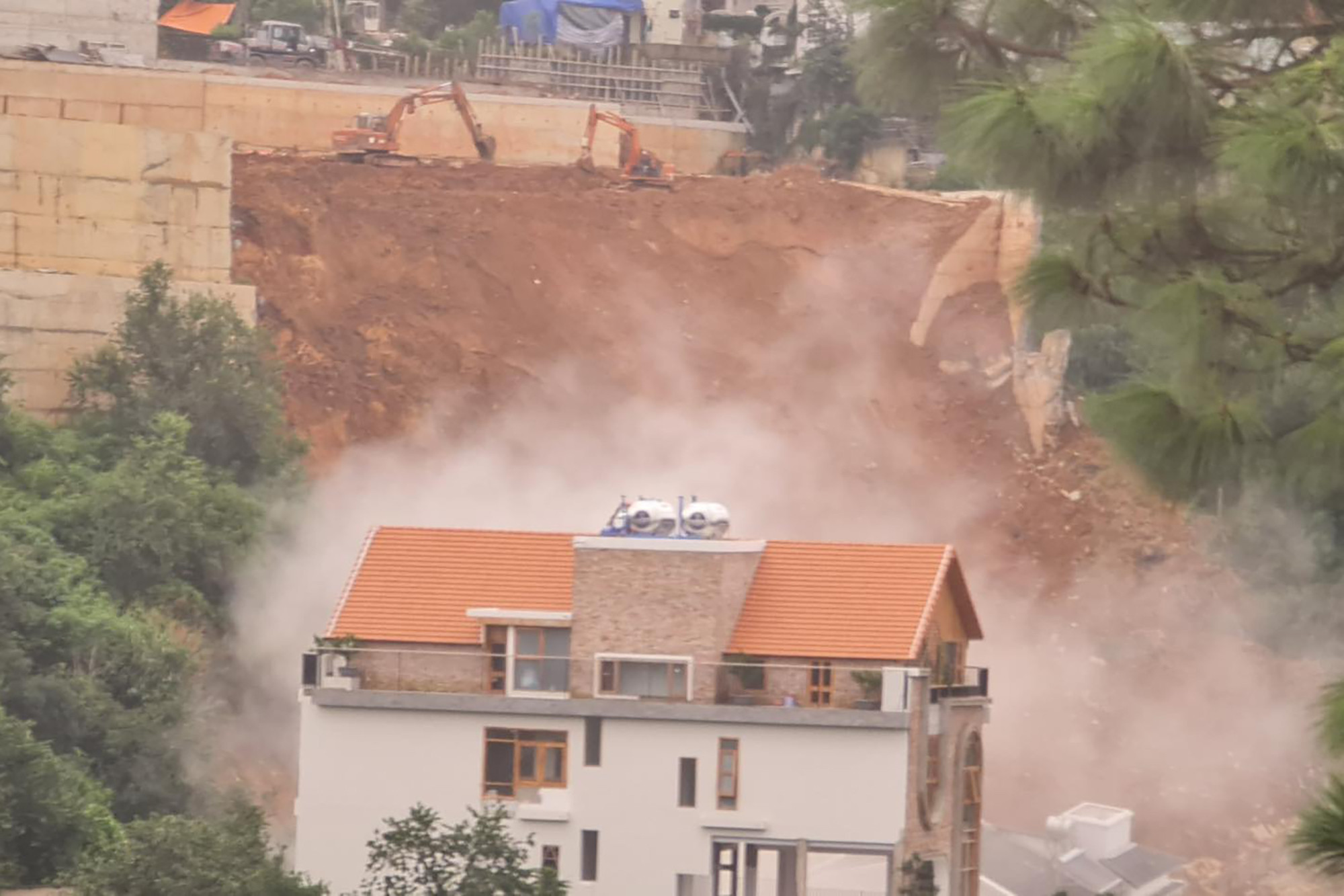 Video ghi lại cảnh đánh sập bờ taluy nơi bị sạt lở ở Đà Lạt, chiều 1/7. Video: N.X