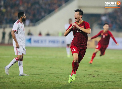 Không phụ lòng mong mỏi của khán giả, ở phút thứ 43, cầu thủ Nguyễn Tiến Linh tung cú sút xa cực đẹp mắt, mở tỉ số cho đội tuyển Việt Nam. Mặc mọi dự đoán rằng UAE sẽ là một đối thủ khó nhằn, các cầu thủ của chúng ta vẫn chơi vô cùng đẹp mắt và giữ vững thế trận.