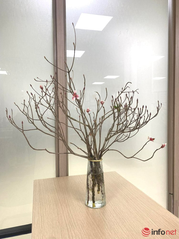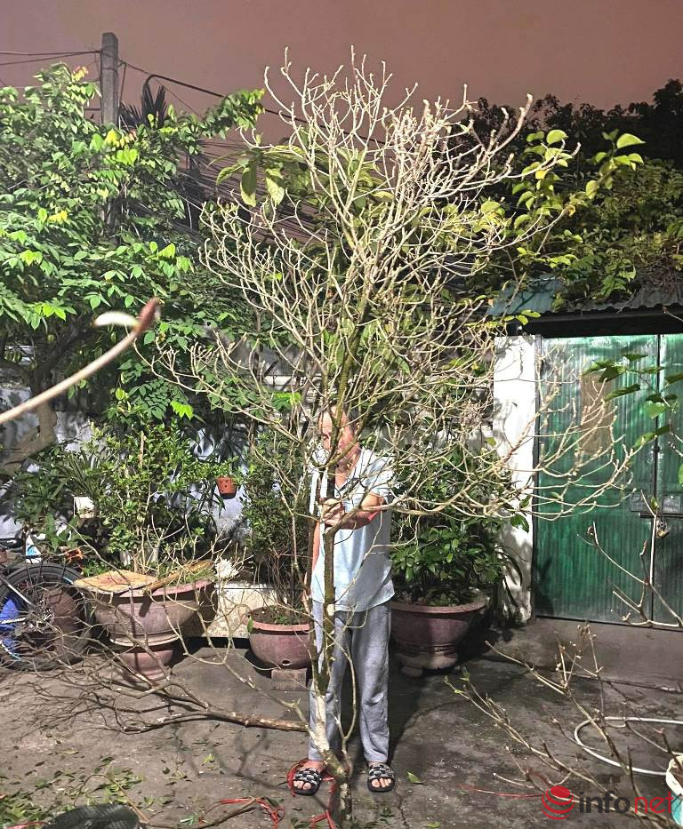 “Hiện nay các cành đào chuông đều đang ở đâm nụ, khách mua về cắm khoảng 10-15 ngày hoa sẽ nở. Hoa nở rải rác, cắm bền nửa tháng, sau đó cành đào chuông lại đâm lộc chơi lá thêm một thời gian. Tùy người chơi, mỗi cành đào có thể cắm bền đến 1-2 tháng.