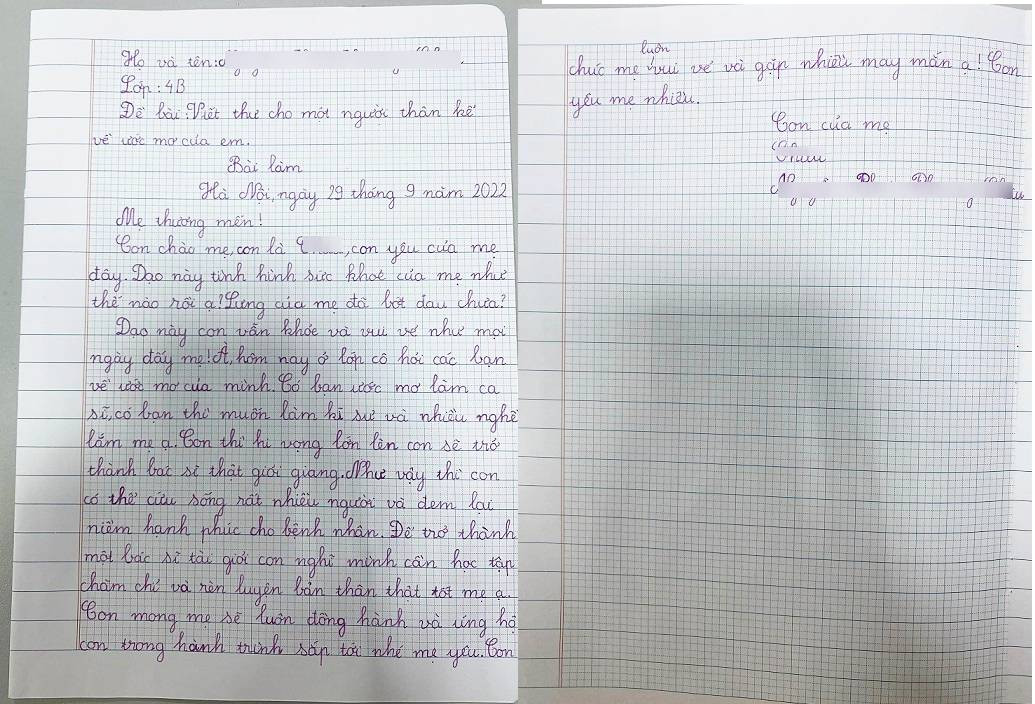 Mới đây, trên trang cá nhân, doanh nhân Đào Lan Hương có chia sẻ bài tập làm văn của con gái lớp 4 với đề bài yêu cầu viết thư cho người thân kể về ước mơ của mình. Nữ doanh nhân còn nhắn nhủ qua dòng trạng thái: “Mẹ chúc con gái sẽ hạnh phúc và thành công trong hành trình chinh phục ước mơ”.