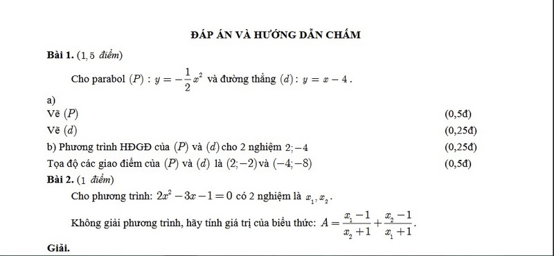 Đáp án chính thức môn Toán thi lớp 10 tại TPHCM