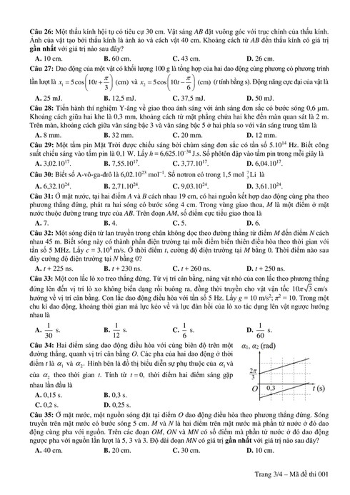 Từ cầu 26 đến 32, đề thi đòi hỏi học sinh vận dụng nhưng cũng ở mức độ vừa phải cùng các dạng toán quen thuộc. Phần khó vẫn thuộc về Điện xoay chiều, Dao động cơ và sóng cơ… Với đề tham khảo này, giáo viên sẽ có định hướng cho học sinh ôn thi tốt hơn.