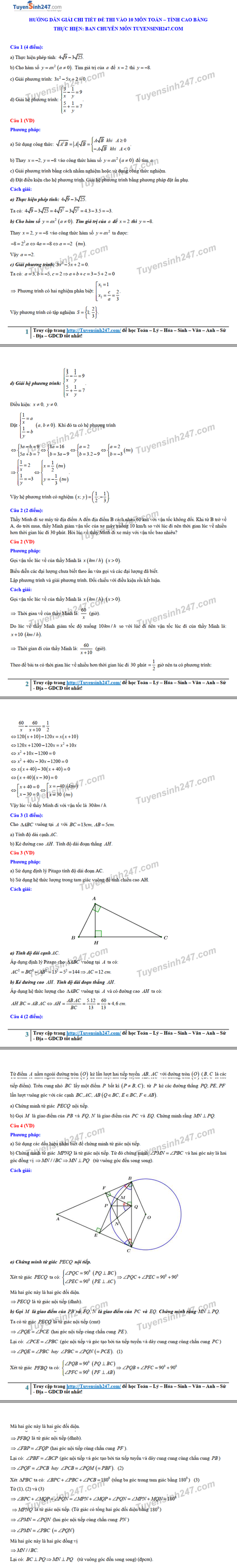 Dưới đây là đề thi và đáp án đề thi vào lớp 10 năm 2019 môn Toán Tỉnh Cao Bằng năm 2019 đã được các thầy cô của Tuyensinh247.com thực hiện.
