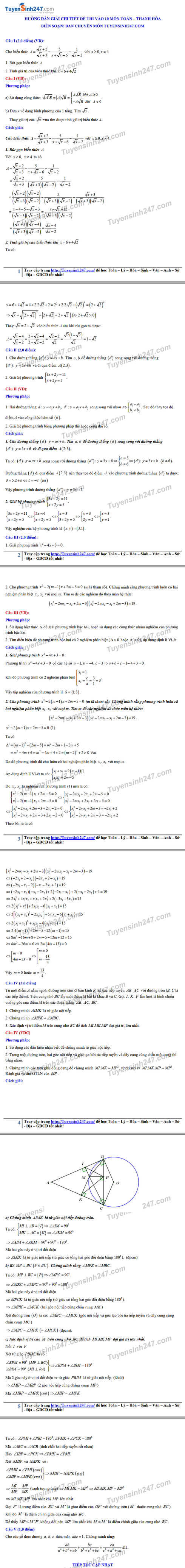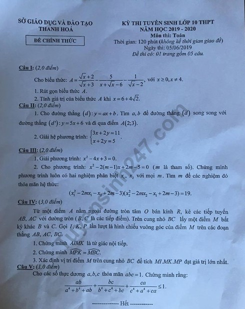Đề và đáp án môn Toán vào lớp 10 năm 2019 Sở GD&ĐT Thanh Hóa đã được thực hiện bởi Tuyensinh247.com.