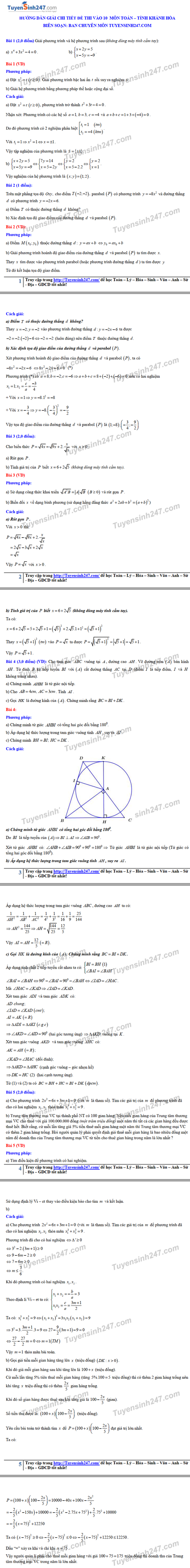Đáp án đề thi vào lớp 10 môn Toán tỉnh Khánh Hòa năm 2019: