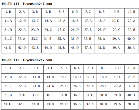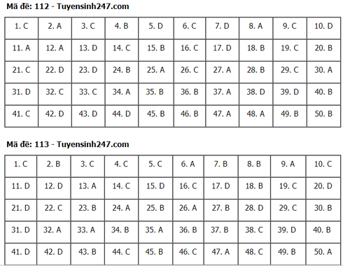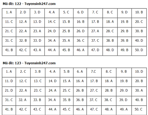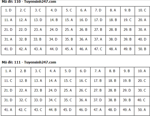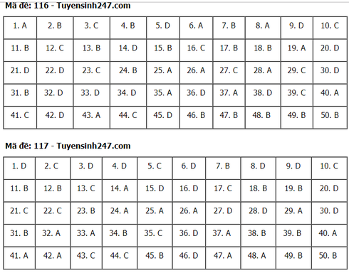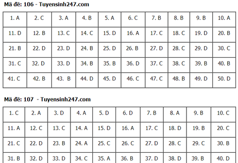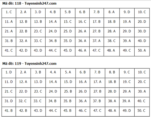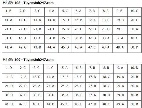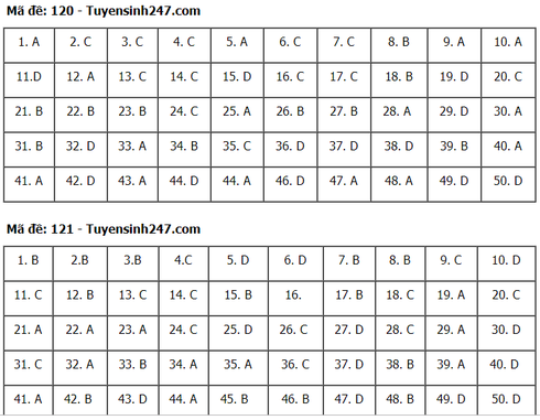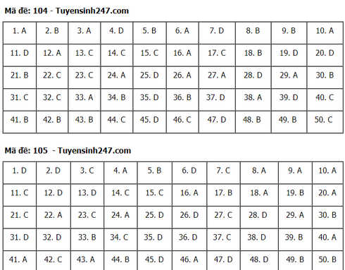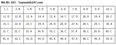 Sau đây là đáp án tham khảo môn Toán thi THPT quốc gia 2019 tất cả mã đề do các thầy cô của tuuysinh247 thực hiện: