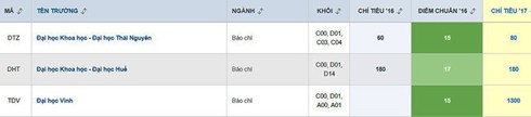 Năm 2017, trường nhận hồ sơ ngành Báo chí từ 20 điểm.