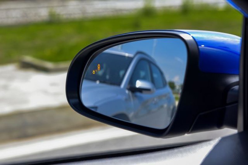 Ốp gương cùng màu với thân xe. Ngoài ra, Hyundai Kona được trang bị cảnh báo điểm mù trên gương. |