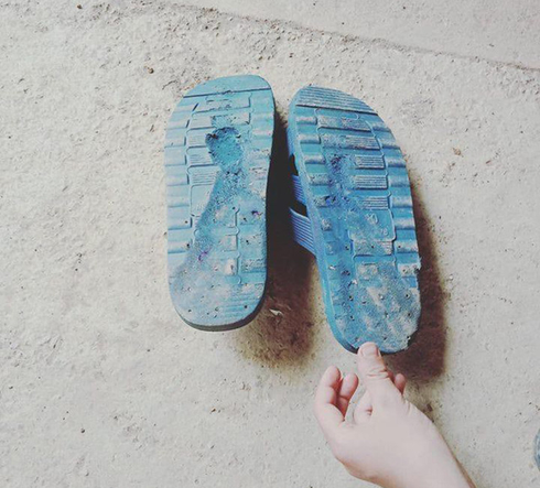 Đôi dép Chiến đã dùng làm phanh xe trên chặng đường 103km đi thăm em bằng xe đạp |
