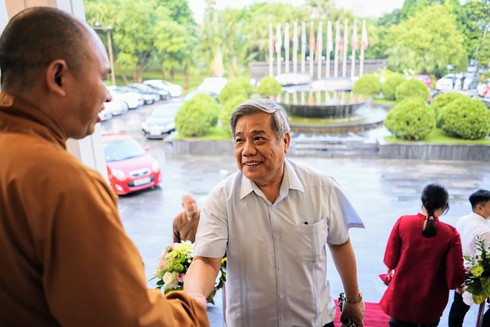 Lãnh đạo Hội đồng Trị sự Giáo hội Phật giáo Việt Nam chào đón khách. |