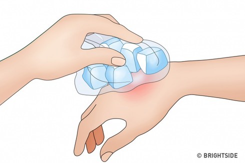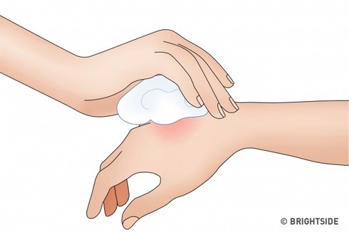 Sau khi bị đốt, vết thương chắc chắn sẽ bị viêm và sưng tấy nhưng chúng ta có thể được giảm thiểu tình trạng đó bằng cách chườm lạnh. Tốt nhất là lấy một miếng vải sạch để bọc đá rồi chườm vào vết đốt.