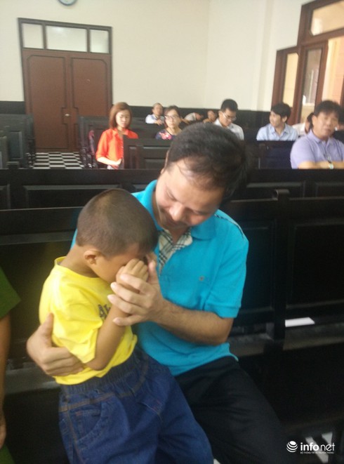 Sáng 17/12, bắt đầu phiên tòa xét xử anh Minh. Vợ anh Minh đưa con trai tới tòa, trong giây phút ngắn ngủi trước khi tòa xử, hai cha con anh ôm nhau khóc. Đứa bé sà vào lòng, anh Minh ôm chặt lấy con. “Cha ơi, cha đi đâu mà không về với con”, đứa bé nói và ôm mặt khóc. Anh Minh nín lặng, giọng nghẹn lại, chỉ ôm con vào lòng, giọt nước mắt chảy xuống.