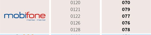 Các thuê bao 11 số MobiFone mã mạng cũ 0120, 0121, 0122, 0126, 0128 sẽ chuyển sang mã mạng mới là 070, 079, 077, 076, 078.