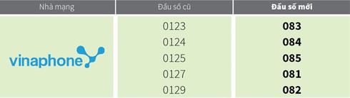 Đầu số 0123, 0124, 0125, 0127, 0129 của VinaPhone đổi thành gì?