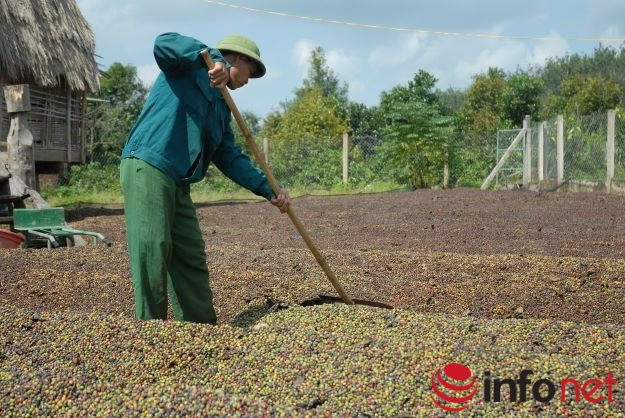 Sau khi đến nơi, anh A Nẻo bước ra niềm nở đón tiếp phóng viên một cách chân thành, mộc mạc rồi dặn vợ ở nhà cho heo gà ăn để mình dẫn phóng viên vào sân phơi cà phê cạnh nhà Rông của thôn để xem thành quả của cả gia đình thu hoạch trong một năm.